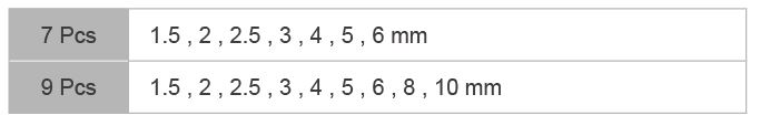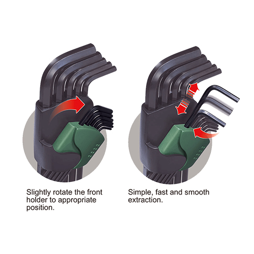 • Providing the comfort of hex keys taken/held (time-saving effect).