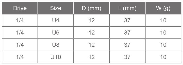 • Socket Material : CR-V • Finish : Chrome plated